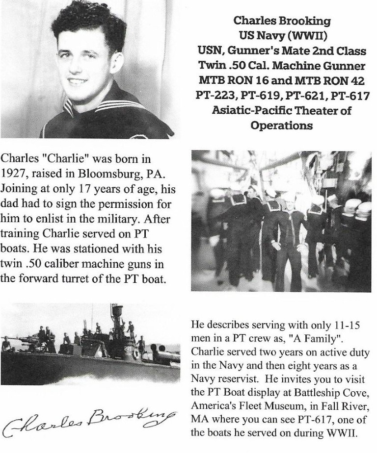 | It was our pleasure to meet 98 yr old Charlie Brooking who was a machine gunner on a PT boat in the Pacific in WWII | |