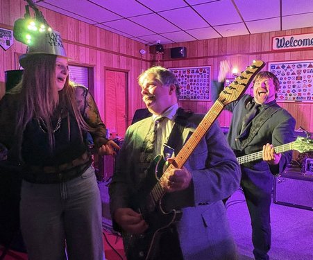 ![]() This was a special moment for Dave....After so many New Year Eves' together making music, this felt like a homecoming to have Schrampie play and sing with us again. |