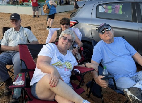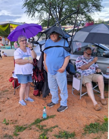 ![]() During a brief shower, Marine Veteran Barry improvised and doubled his chair as an umbrella to protect his pretty little head. |