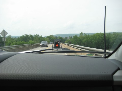 The "Lucky Bus" followed an Amish buggy. |